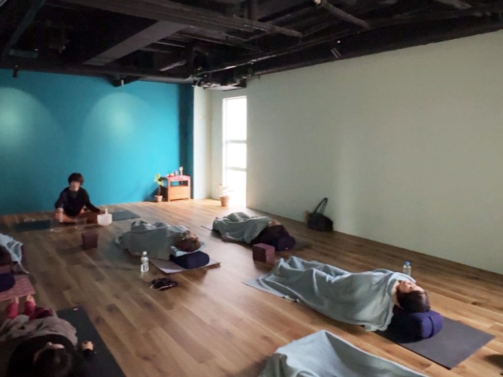 瞑想のヨガとも呼ばれており、ポーズをとりながらガイドを聞き内側に意識を向けます。